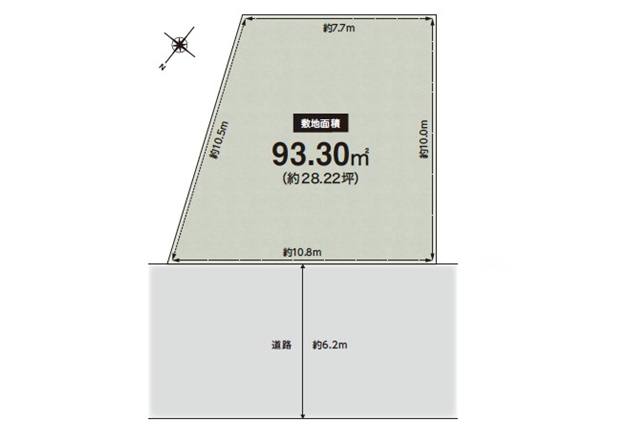 | 接道状況 | 一方道路 (北西側約6.2m 公道 間口 10.8m) | ||